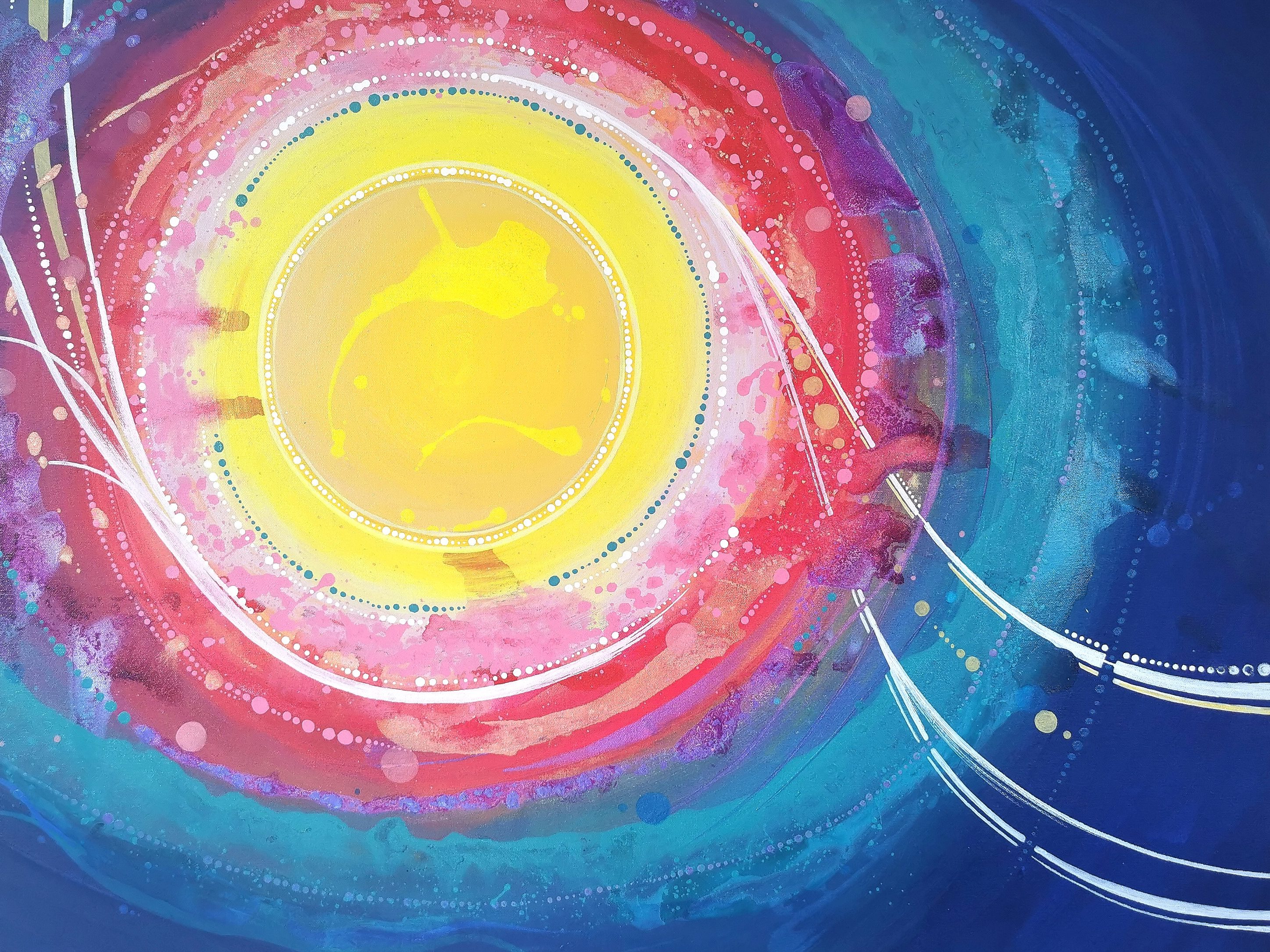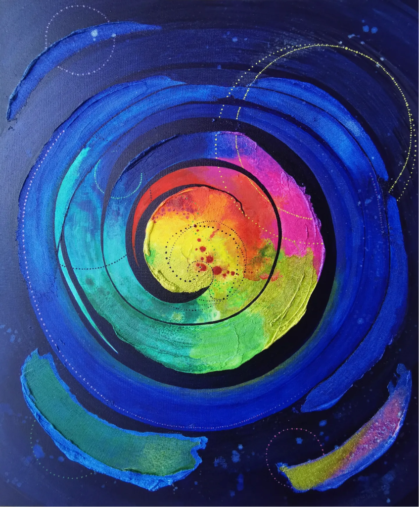 …connection with the community, with the world, with the universe itself. My art is meant to be a bridge—a space where people feel seen, heard, and understood. In a world where so many struggle in silence, believing they are different, broken, or alone, this sense of connection is vital. When we feel disconnected, we suffer; we lose ourselves in pain, in isolation, in the weight of our daily battles. My paintings are a reminder that no one is truly alone. They are an embrace for the heart and soul, a path toward healing, a light in the darkness. But beyond offering comfort, they also invite the viewer to see the beauty that surrounds us—the vast sky, the rhythm of the earth, the quiet wisdom of the stars. Through connection, we rediscover our place in the world, not just as individuals, but as part of something infinitely greater.