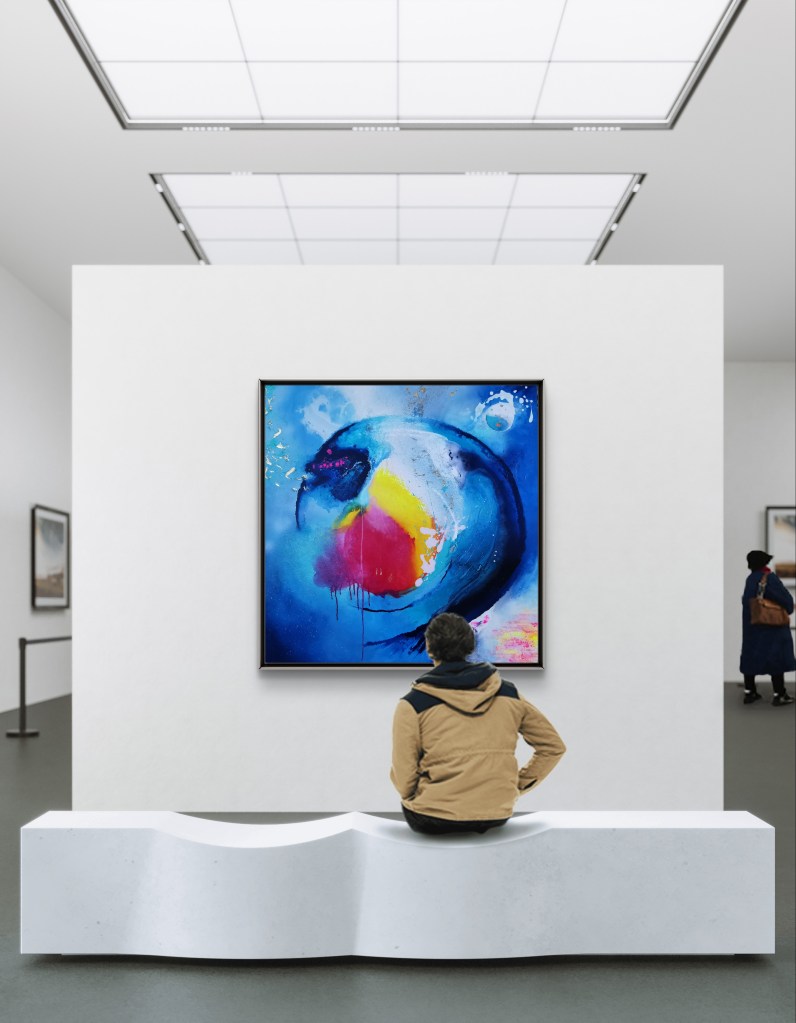 Hidden within the vibrant layers of paint are symbols that transcend time and culture – angels, the duality of yin and yang, the representation of street art, a symbol of feminine beauty, a bleeding heart, the mystical number 11 and much more – each inviting viewers to meditate deeper into the mysteries of existence.