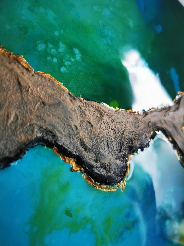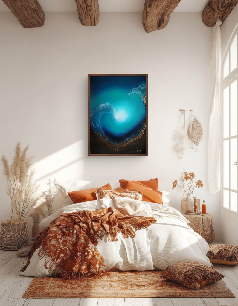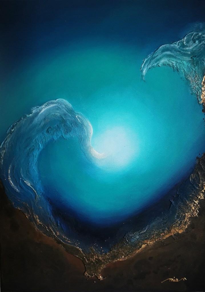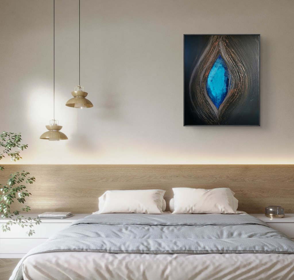For me, it’s all about the contrast here. The turquoise and green feel alive, the browns and metallic tones keep everything grounded, and then there’s that light in the middle that makes it breathe. It reminds me of a selfless love — strong and solid, but at the same time easy and light, beautiful to observe.