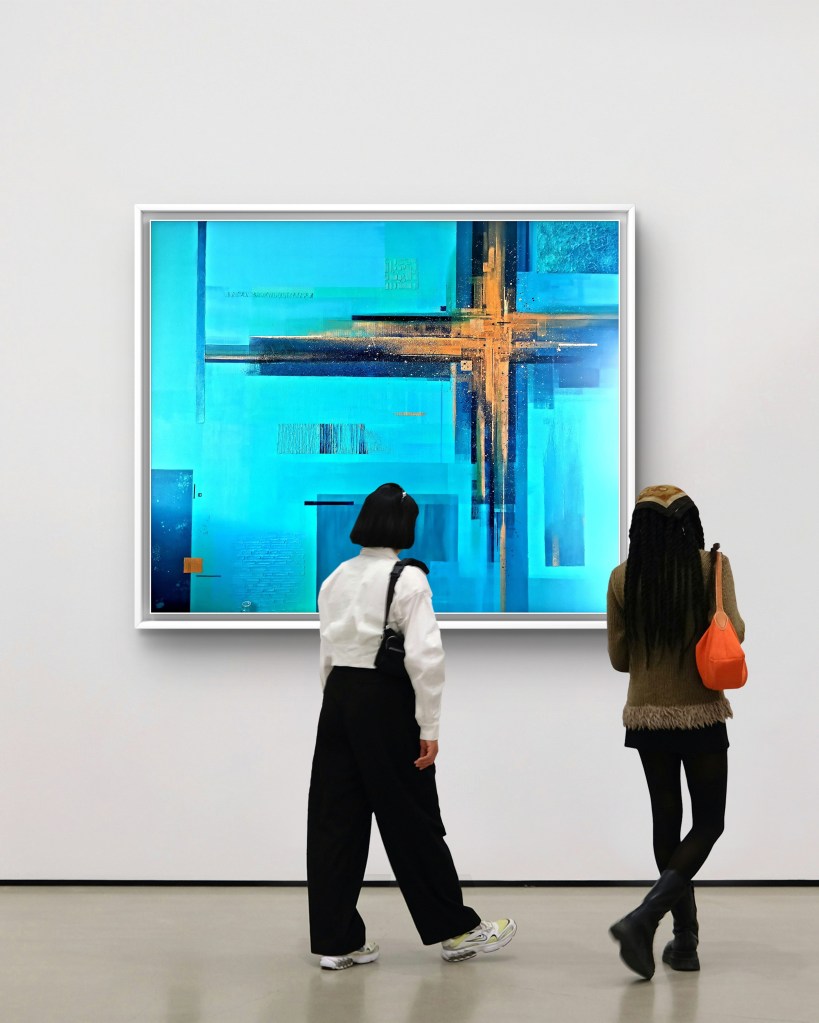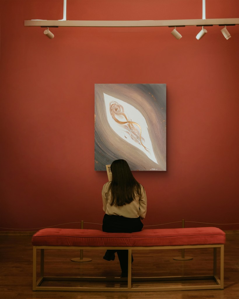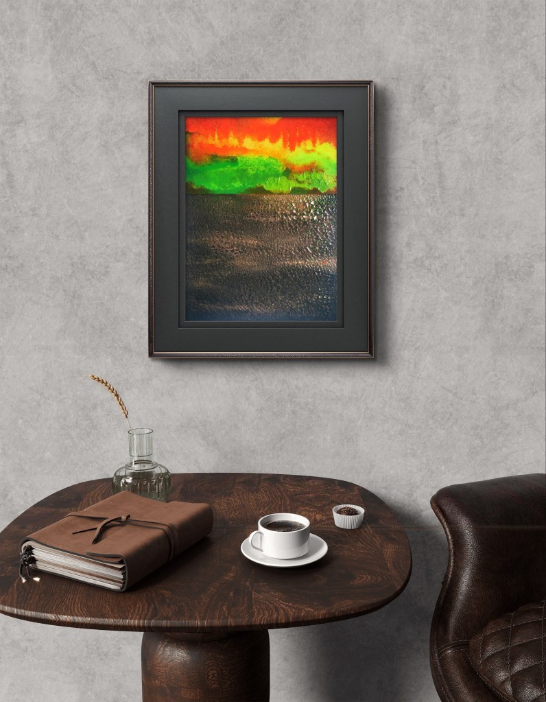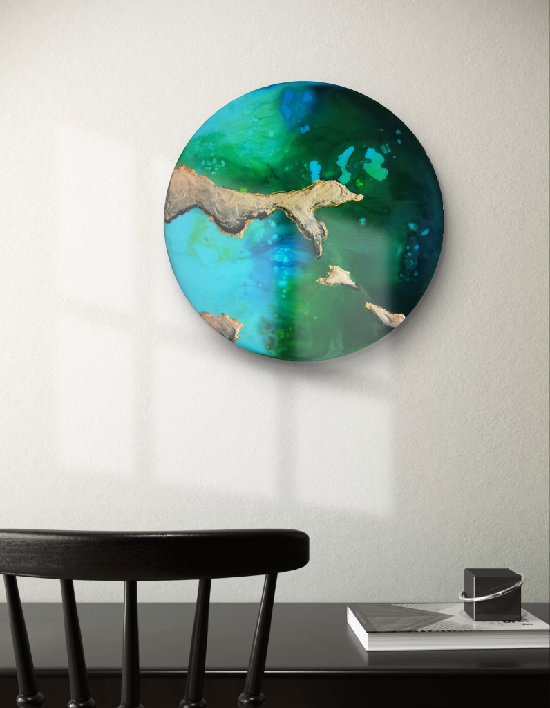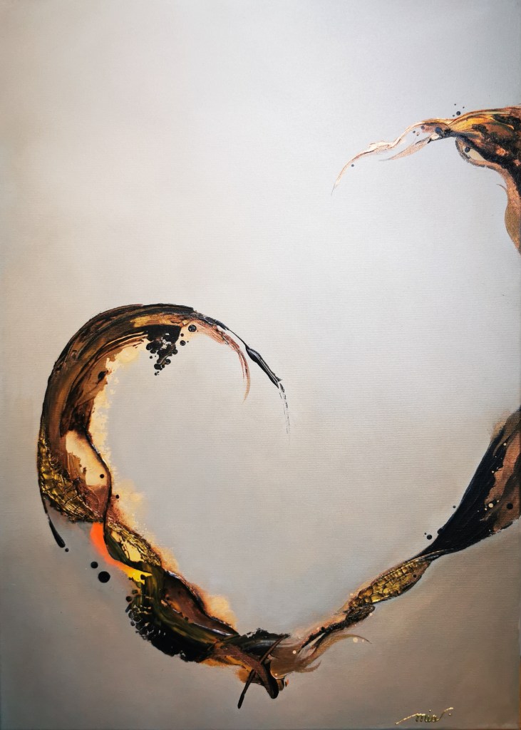 For me, it’s all about the contrast here. The turquoise and green feel alive, the browns and metallic tones keep everything grounded, and then there’s that light in the middle that makes it breathe. It reminds me of a selfless love — strong and solid, but at the same time easy and light, beautiful to observe.