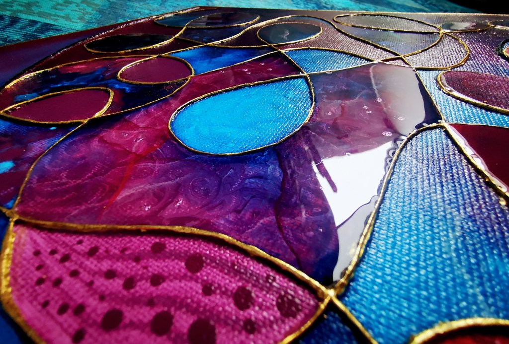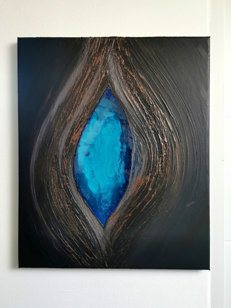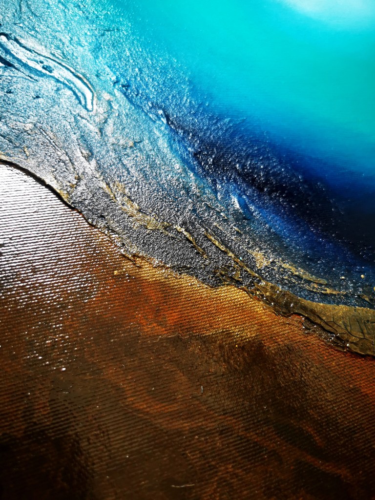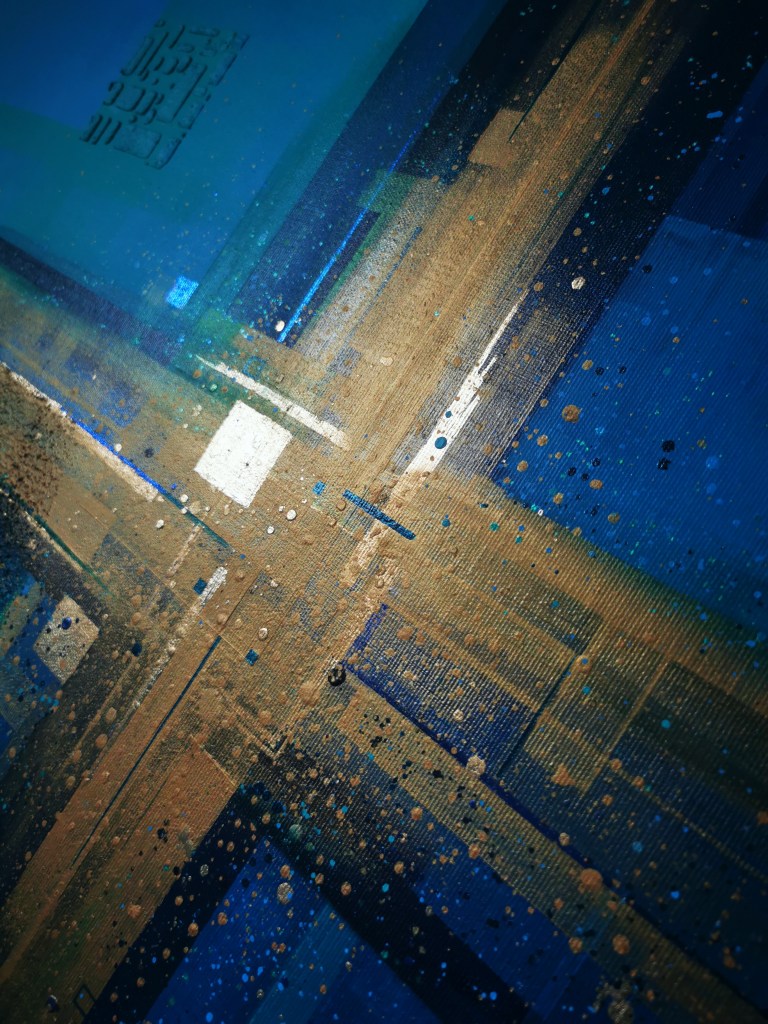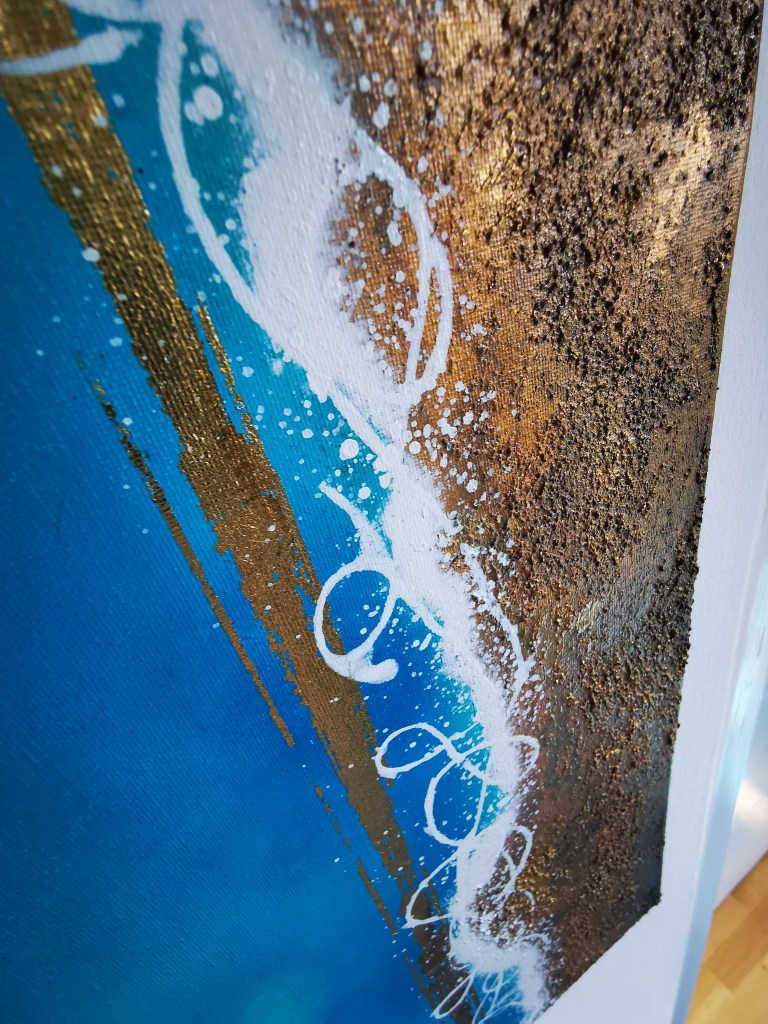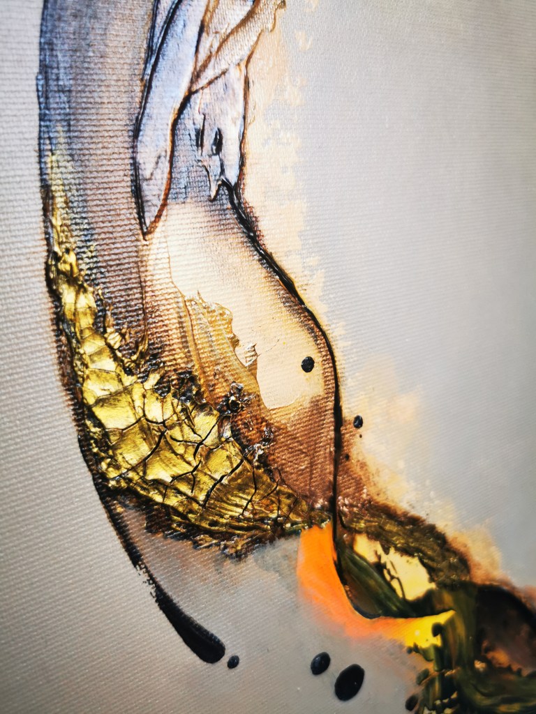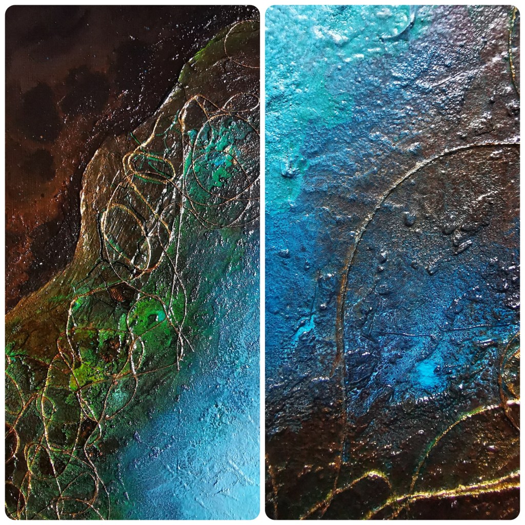 50 x 60 cm, acrylic painting with different textures, metallic blend.
