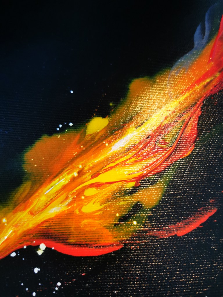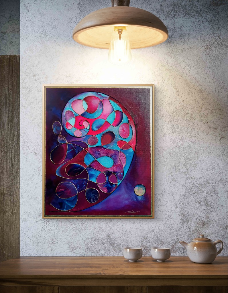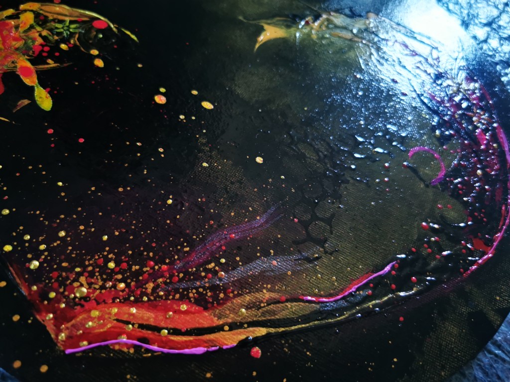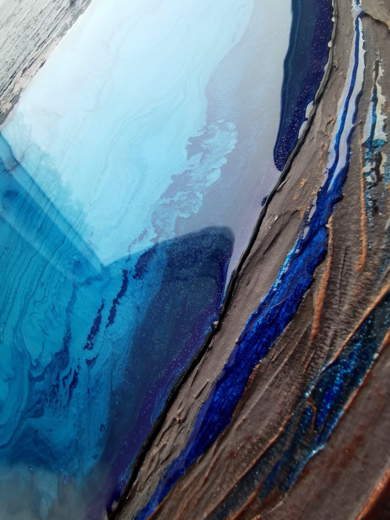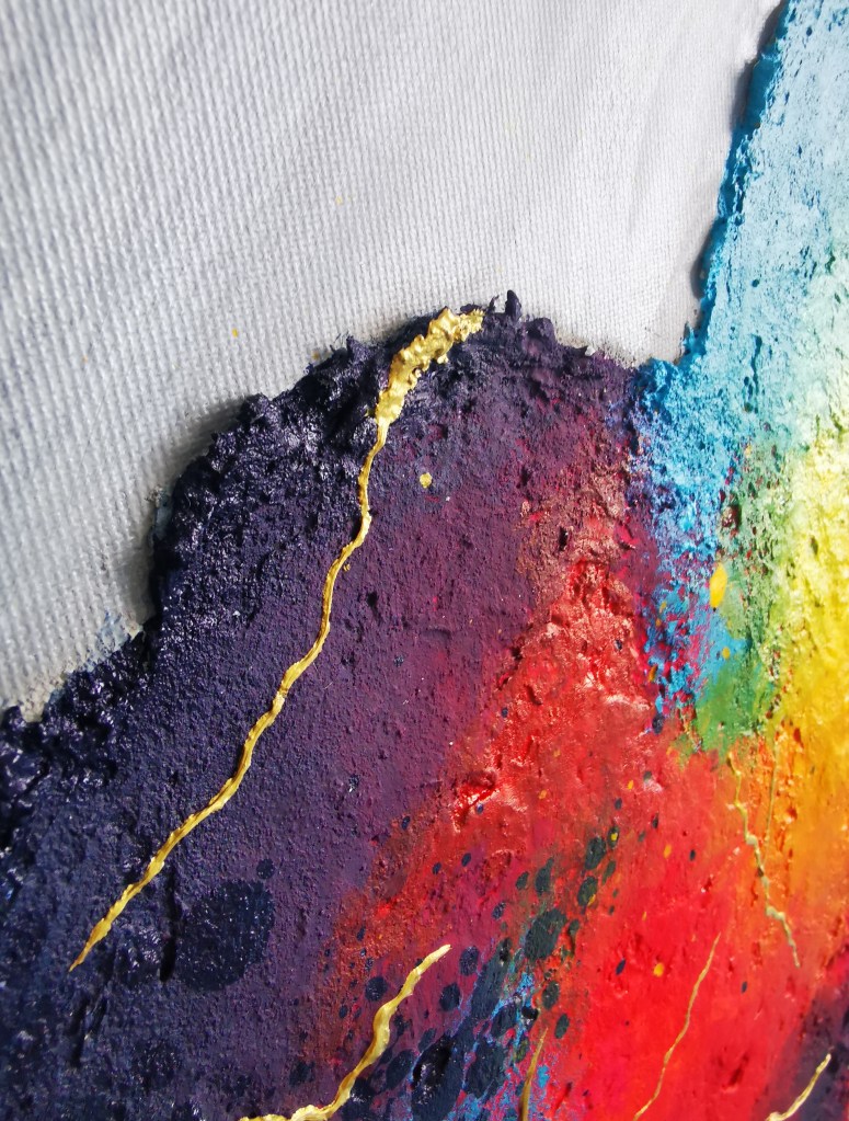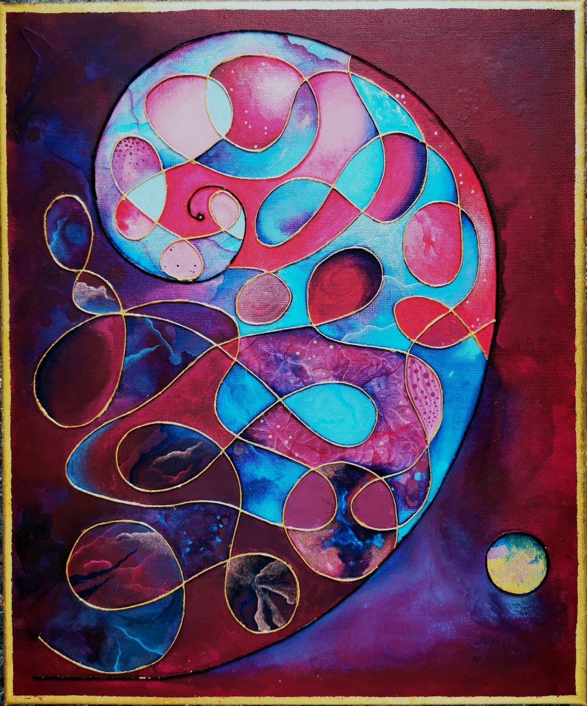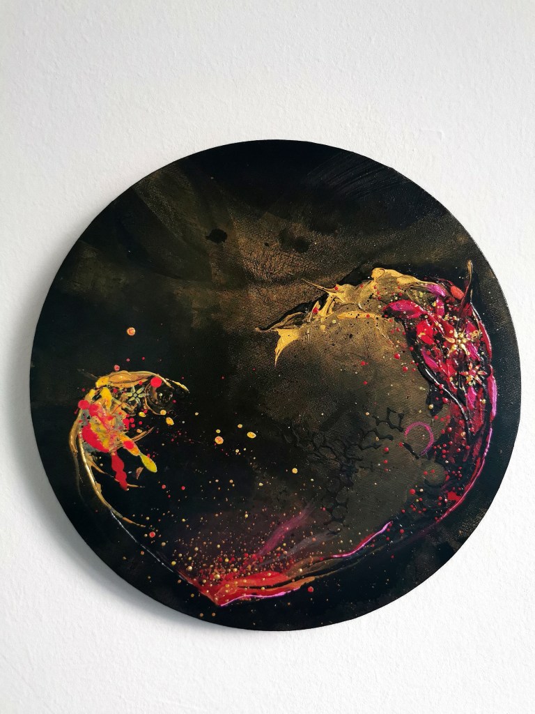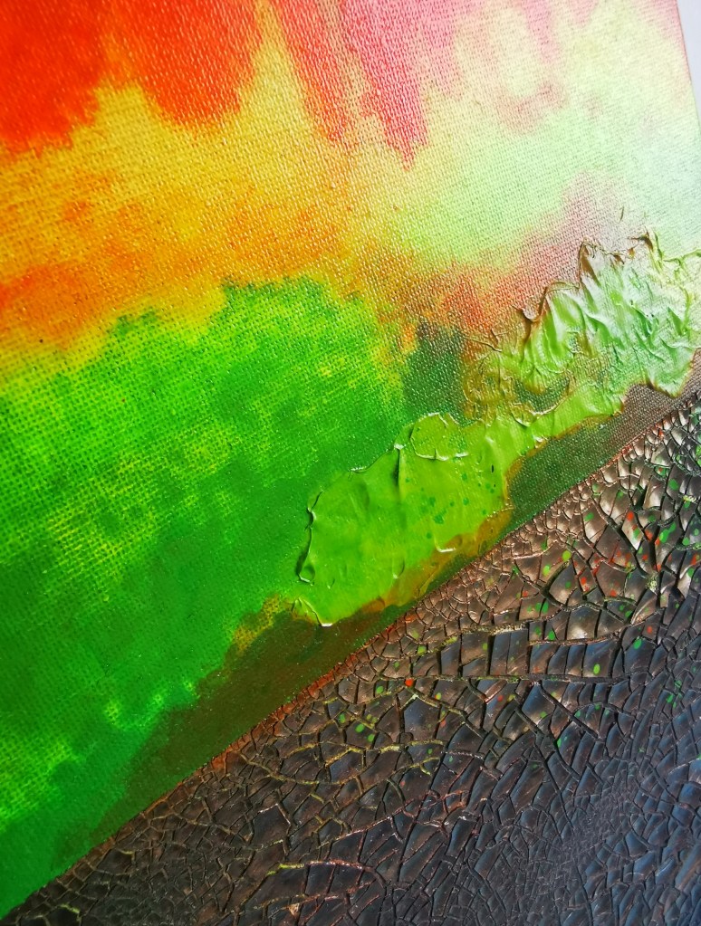 50 x 60 cm, acrylic painting with different textures, metallic blend.