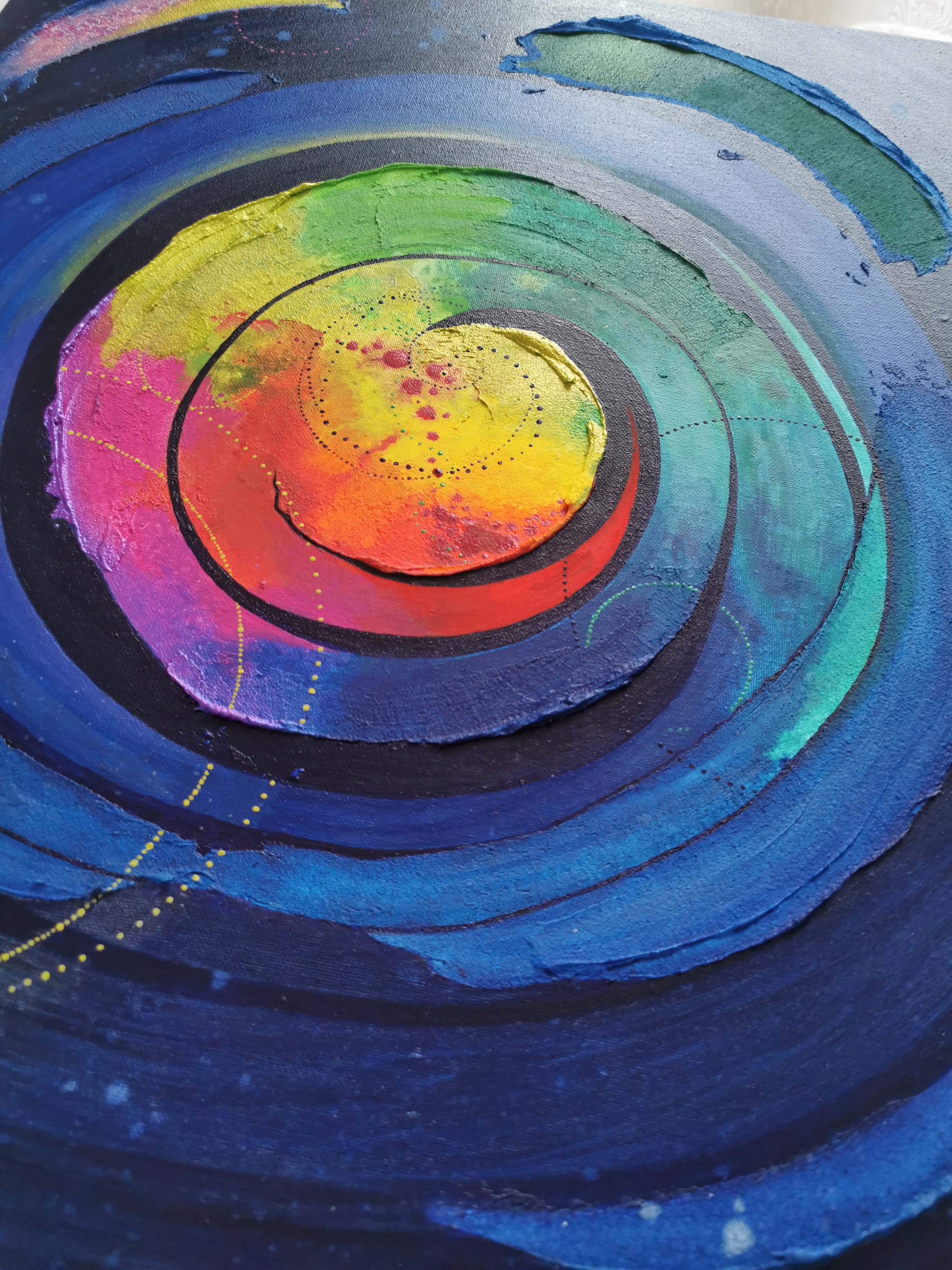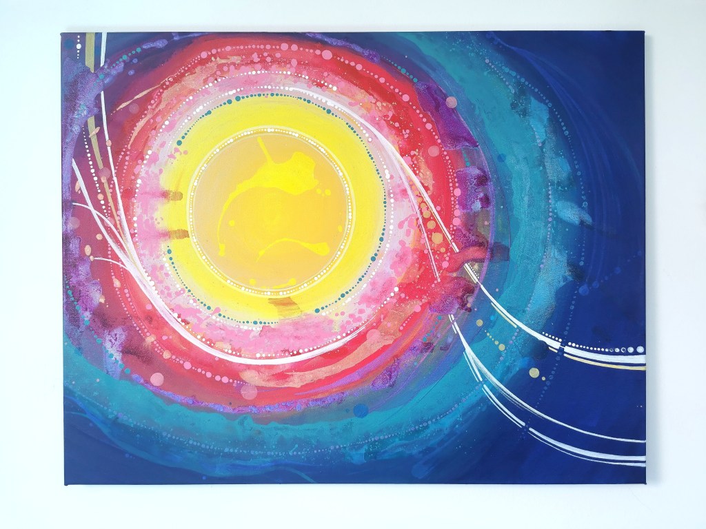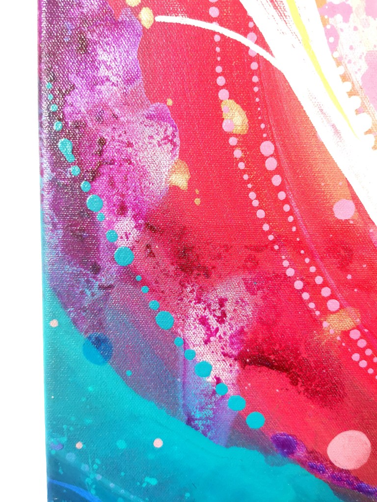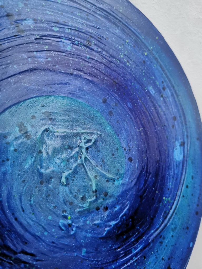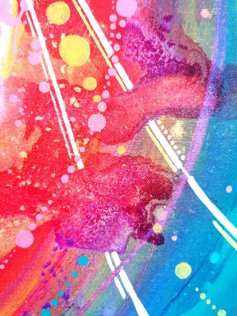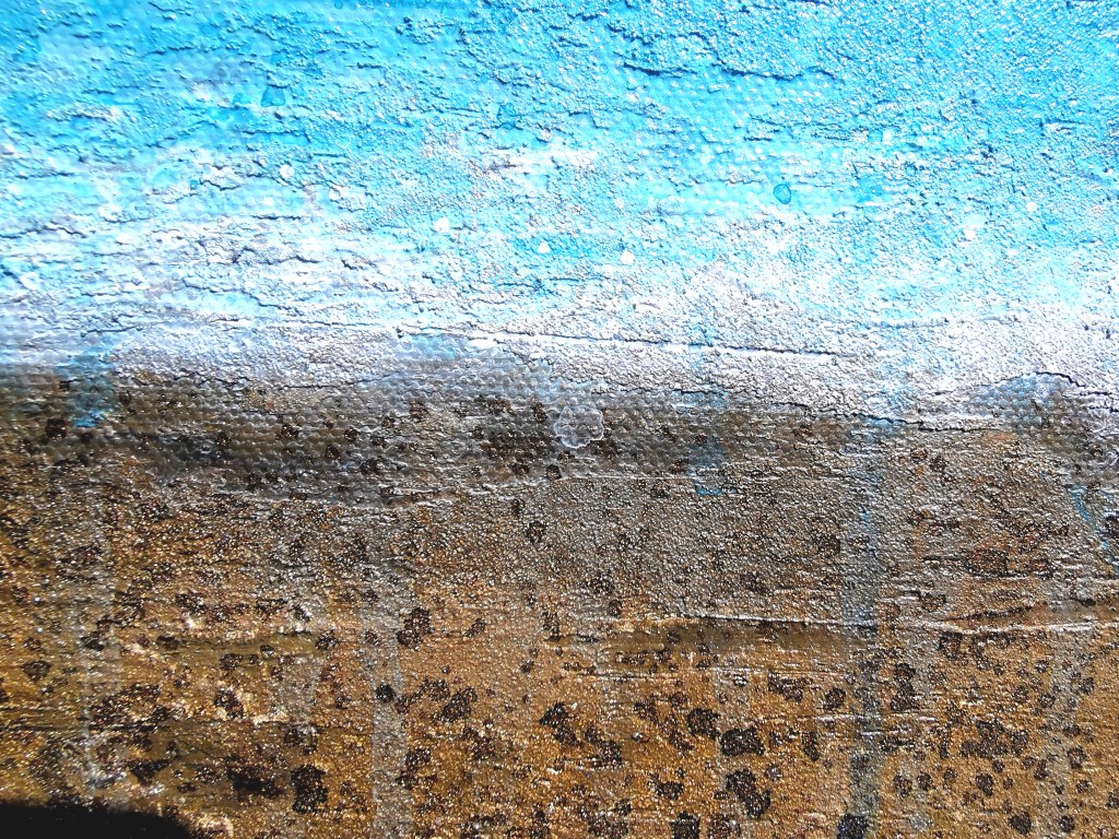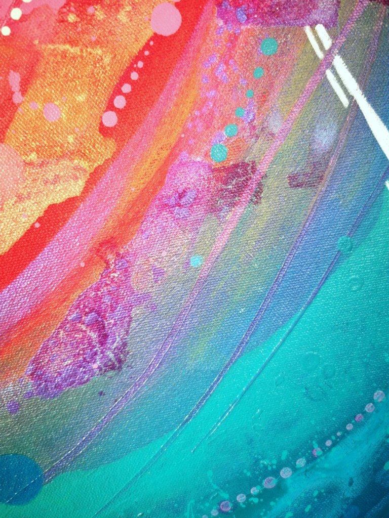 Acrylic painting with different types of paint, textures and resin touches.