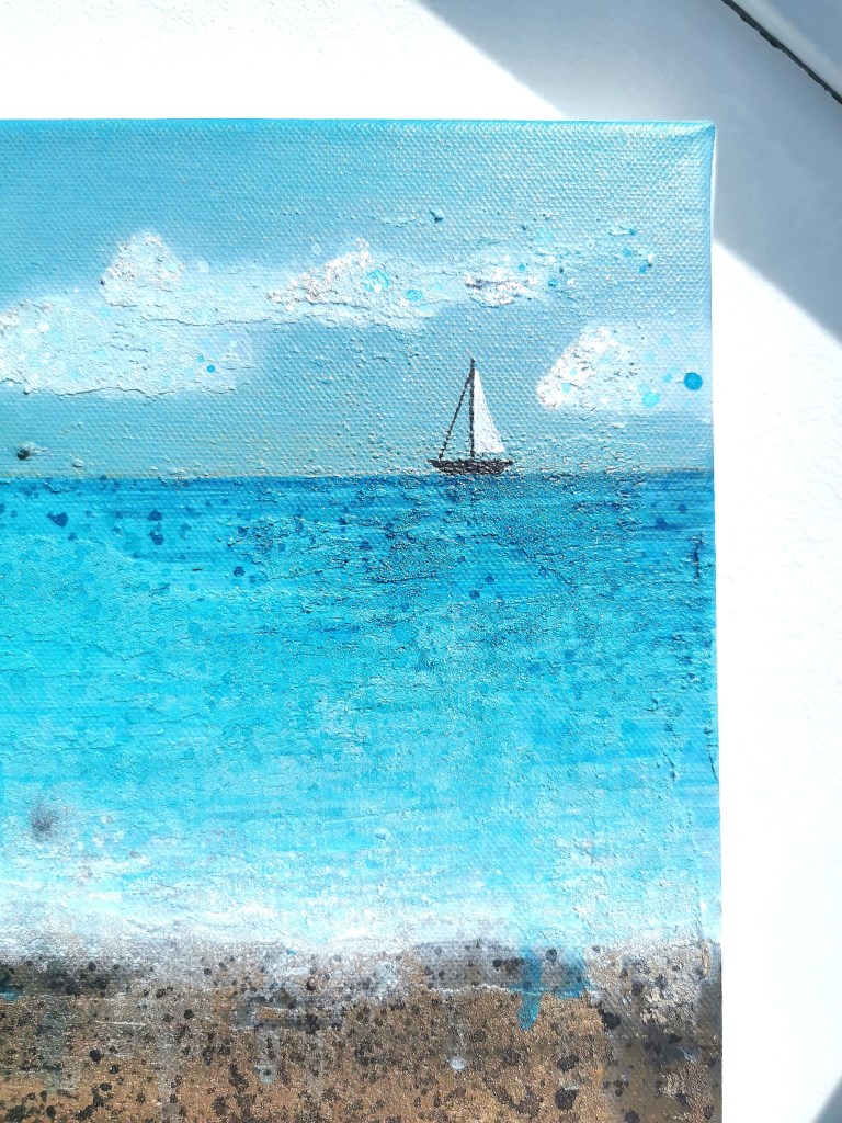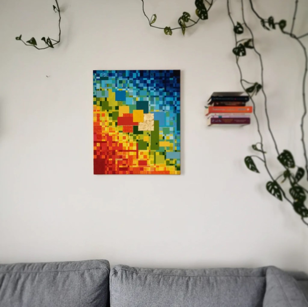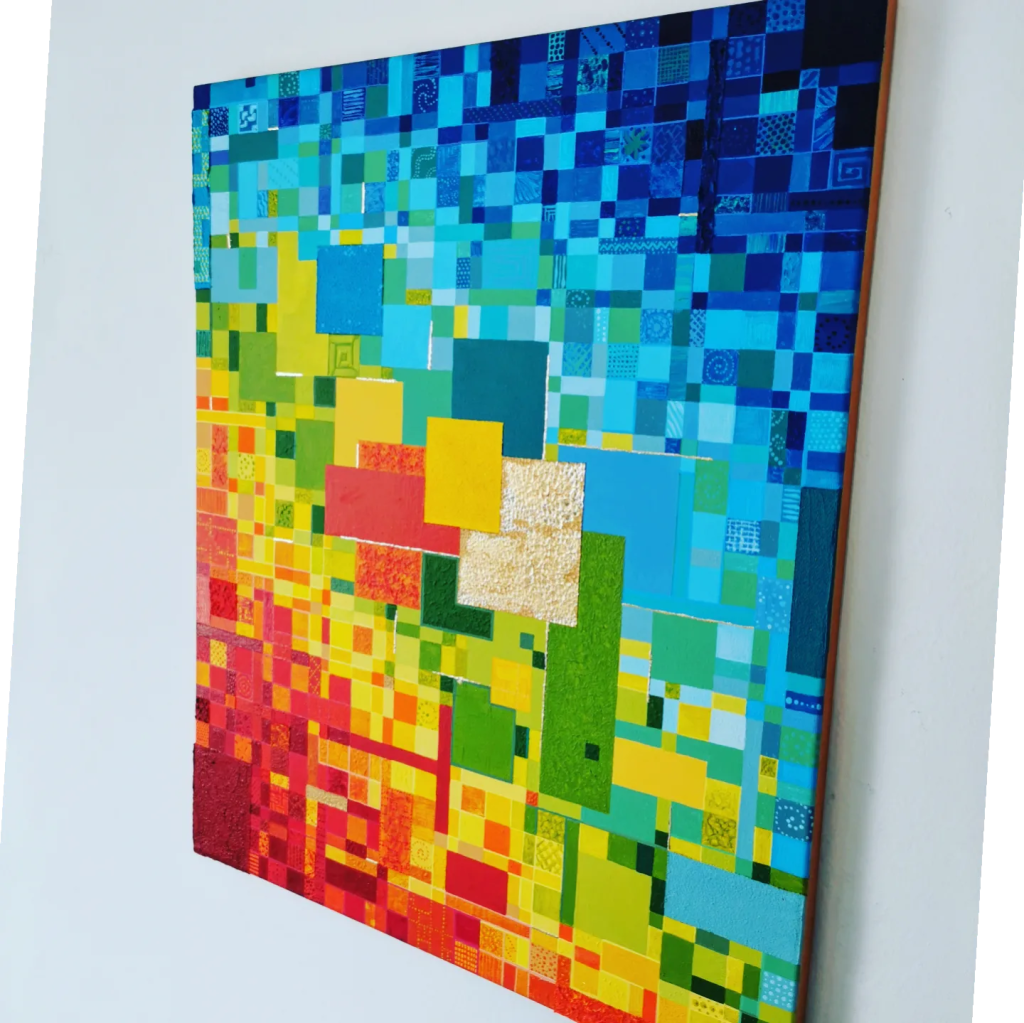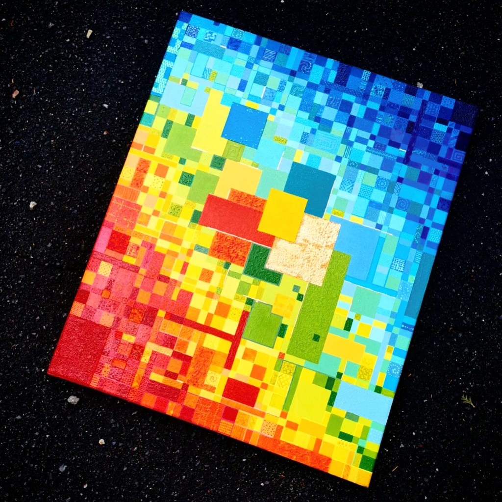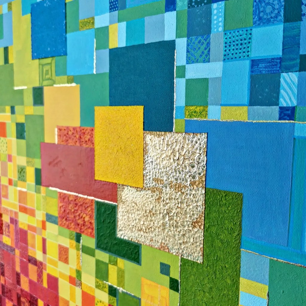 The Boxes of Sunshine a.k.a. Painting inside of 4 lines is something I’ve been working on in February. When I begin a new canvas, I usually have a pretty good idea of where I want to go with it. It’s like having a roadmap in my mind, guiding me through the twists and turns of the creative process. Sure, things don’t always turn out exactly as I envision, but that’s all part of the adventure. The colors are chosen, the materials are ready, the picture already exists in my head. While some might see it as playing it safe, I prefer to see it as finding joy in the familiar, like soaking up sunshine in a cozy box of creativity.