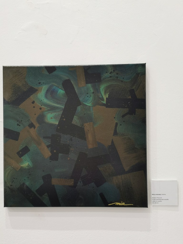 The Art Gallery Rosso Cinabro in Rome has been host for three of my paintings in the last months. The exhibition, which ran from July through the first week of September, displayed 11 Shades of Peace, The Light within Autumn, and A Modern Peacock as part of the Maximalism series. A Modern Peacock is an early work using different types of acrylic paints, while the other two are following the direction of mixed media by combining the acrylics with two types of structure paste and silver leaves.
